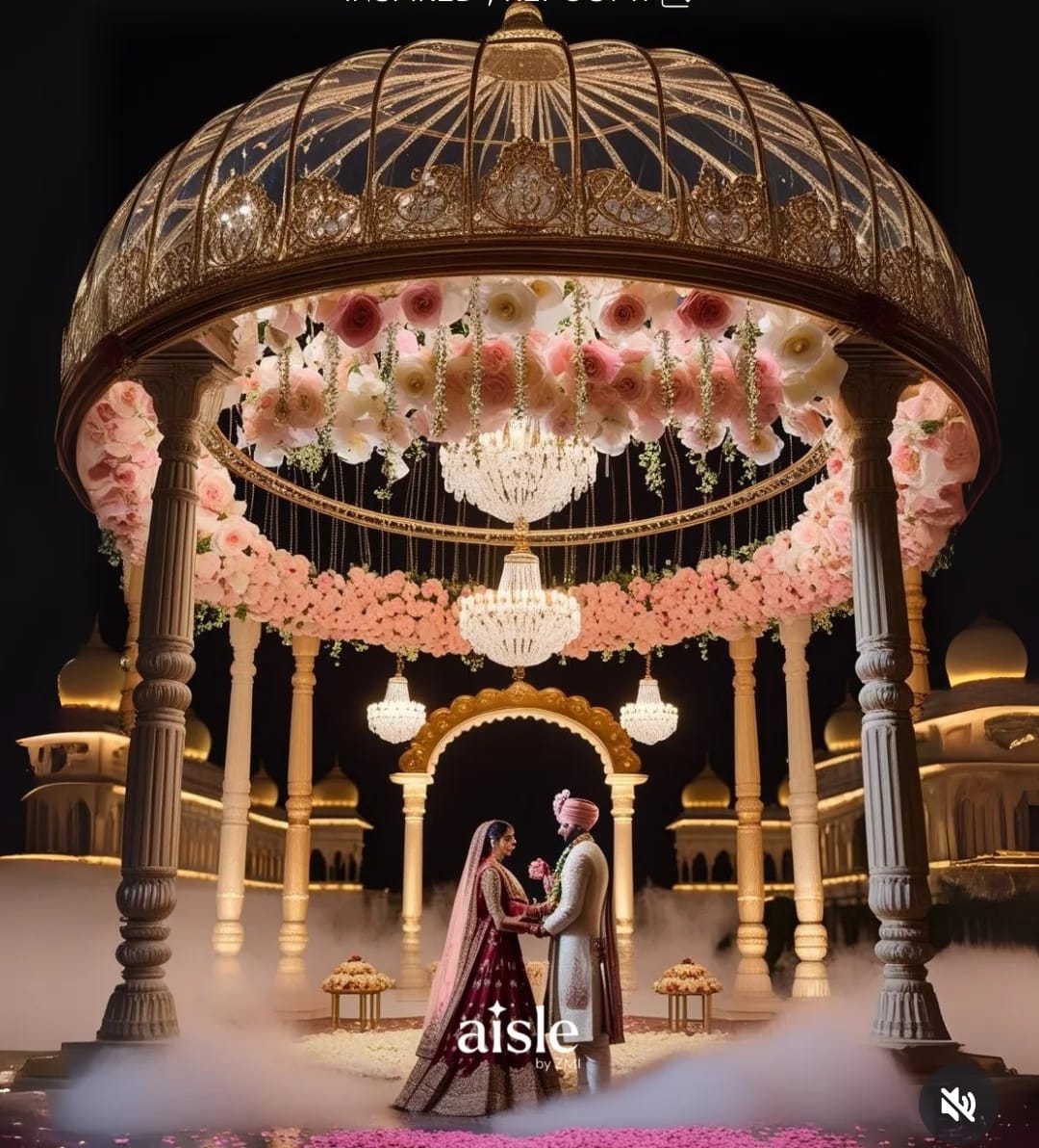 • Crystal Mandaps – Elegant and luxurious with sparkling crystal accents