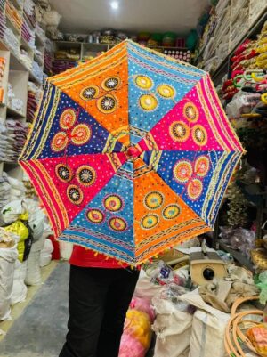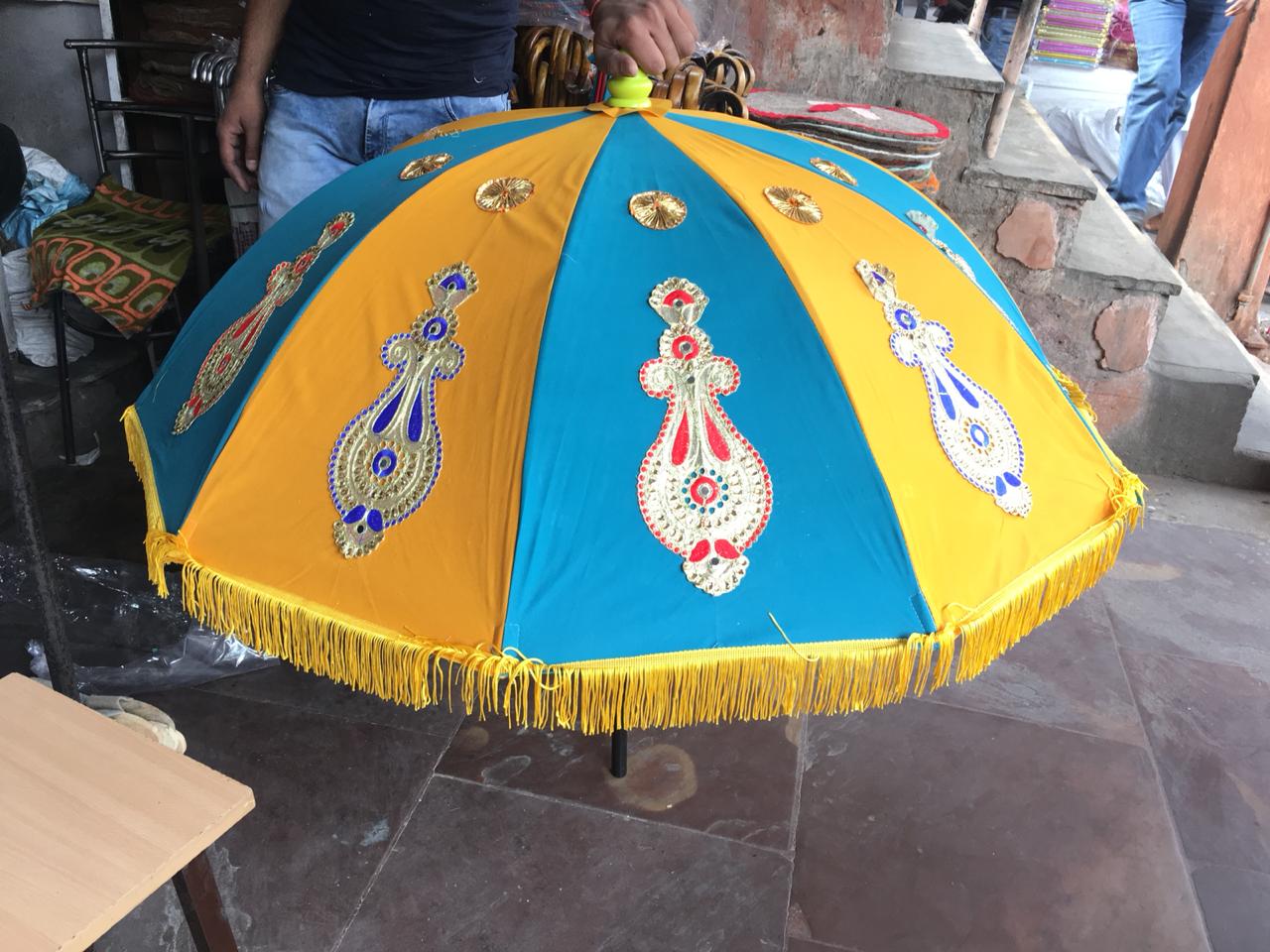 GUPTA EXPORTS is leading Manufacturer and Exporters of all types of Wedding Umbrellas.We have all types of umbrellas Heavy Embroidered Umbrella, Plain valvet colorful Umbrella with Hanging Tassels, Red Embroidered umbrellas with hanging crystals and lace, Umbrella wedding fiber umbrella, wedding hanging crystal umbrella, Patch work Umbrella, Wedding umbrella with hanging tussles, Parasols crystal umbrella, wedding Red embroidered umbrella with Sequins, Rajasthani wedding umbrella, jaipuri wedding Umbrella, Embroidered multicolor umbrella, Indian wedding umbrella, Mehandi stage decoration umbrellas, Colorful wedding chatars, Muslim wedding umbrella, Pakistani wedding umbrella, Arabian wedding umbrellas, Designer wedding umbrella, Muslim Wedding Stage Umbrella. it is designed with Colorful thread, shining stars and golden kinari on cotton cloth with embroidered work on it in multicolored designs.